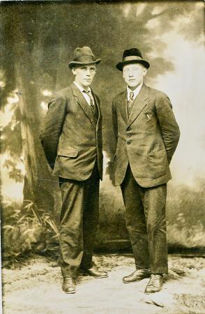 Arvid Österholm och Evert Påfs i en fotoateljé i Vasa.