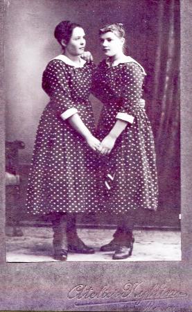 Anna och Agda anslöt sig som unga tonåringar till den vita sidan under frihetskriget som kokerskor till trossen. De var båda med vid slaget i Tammerfors och striderna vid Helsingfors. På bilden är de lika klädda, vilket visar på hur goda vänner de var.