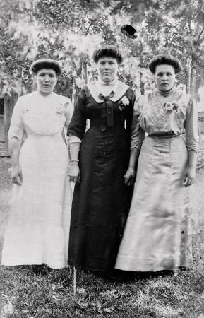 I mitten står Hulda och till höger Alina. Både Hulda och Alina stannade kvar i Amerika.