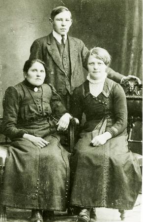 Sittande från vänster: Hulda Herrlin "Lans-Hulda" född år 1879, trotjänarinna åt sin kusin Karl Boij "Lans-Kal" i Näsbacken f.