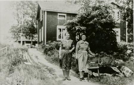 Fotot av de båda ogifta systrarna taget nångång på 1950-talet. Ester, utbildad småskollärare, vikarierade i folkskolan i Tölby under femtiotalet. Ester och Josefina föddes på f.d. Ruth fänrikboställe i centrum av byn. Vid storskiftesregleringen 1905-1910 flyttades gården till sin nuvarande plats på Näsbacken och byggdes upp på sin nuvarande platsen av Johan Österholm.