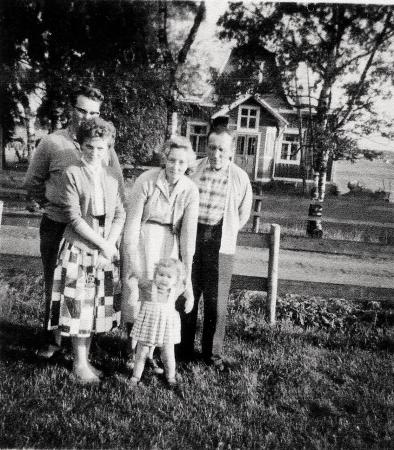 På fotografiet: Börje Bagge, Sonja Bagge född Martin, Ingeborg Martin född Bengs i Helsingby, Harald Martin. Börje och Sonjas dotter Lilian står framför. I bakgrunden gården som Alfred Martin byggde år 1936.