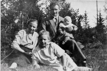 Erik född år 1890 i Vörå, kom som lärare till Tölby-Vikby folkskola år 1921. Hustrun Ellen född år 1894 Blomström i Nykarleby. Dottern Greta född år 1915 i Malax och sonen Gösta född år 1924 i Tölby. På fotografiet är hela familjen fotograferad invid skolan, där Erik var lärare tills år 1953. Efter hans avslutade 32åriga lärargärning i Tölby skoldistrikt, flyttade Erik och Ellen till Nykarleby där de båda dog. De år begravda på Kapellbacken i Korsholm.