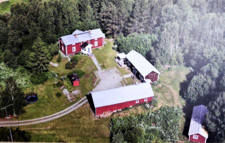 Flygfoto av "Eriksons" gårdsgrupp på Marabacken. Nuvarande ägare familjen Backman-Suomela.