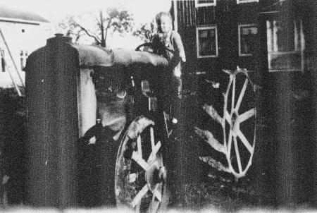 Fotografi av Leif-Arne Vesterlund vid ratten av en Fordson Major traktor vid "Påvis".