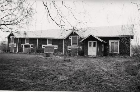 Fotografi av Röfvas uthus med lillstuga till höger i byggnaden..