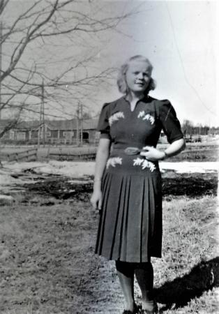 Margit Påfs, f 1922, gift med affärsmannen Bengt Berg i Vasa och flyttade dit. I äktenskapet föddes fyra flickor. Ann-Charlotte, Ulla, Susanne och Nanna. I bakgrunden på fotografiet syns Johannes Thölix fähus och uthusrad.