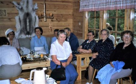 I bild från vänster: Aili Enegren, Etel Thölix, Anna och Rafael Forth (skymda), Sigrid Rosendahl, Edna Smeds, Ester Forth. Mitt i bild närmast Edit Östman.