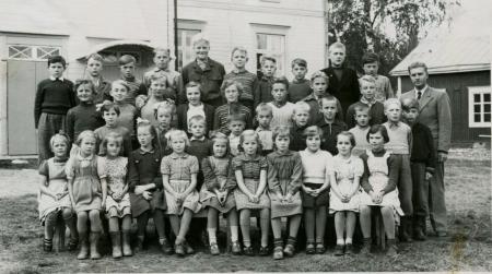 Tölby- Vikby skolas elever 1954-55. Överst rad 1: Roy Sandelin, Frank Mara, Jan Österholm, Folke Smeds, Elof Rosendahl, Kjell-Erik Backman, Ingmar Österberg, Jörgen Österholm, Gunnar Elfström, Erik Norrgran. Rad 2: Bernice Östman, Christina Näs, Birgit Paro, Gunnel Renfors, Sig-Britt Rodas, Christer Smeds, Bernt Pått, Roger Thölix. Rad 3: Göta Renfors, Ann-Mari Holm, Boris Östman, Bengt Nylund, Mikael Glasberg, Rolf Kronholm, Per-Ole Paro, Lars-Erik Aura, Carl-.Erik Forth, Bjarne Smeds. Rad 4: Margaretha Thölix, Gunnevi Backman, Gretel Östman, Marita Österberg, Marianne Granholm, Anita Aspling, Viveca Nygård, Solveig Forth, Birgit Smeds, Birgitta Thölix, Marianne Enegren.