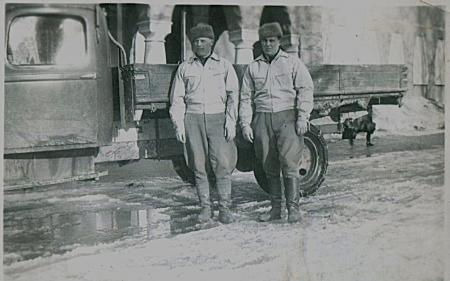 Emil Rodas idkade både buss och lastbilstrafik. Här fotograferad med sin lastbil tillsammans med Bertel Thölix.